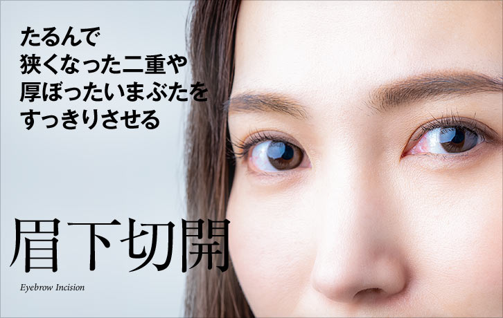 眉下切開法(眉下リフト)は、年齢とともにたるみの出やすい上瞼を自然に目元の印象を変えることなく、たるみを取る治療方法です。