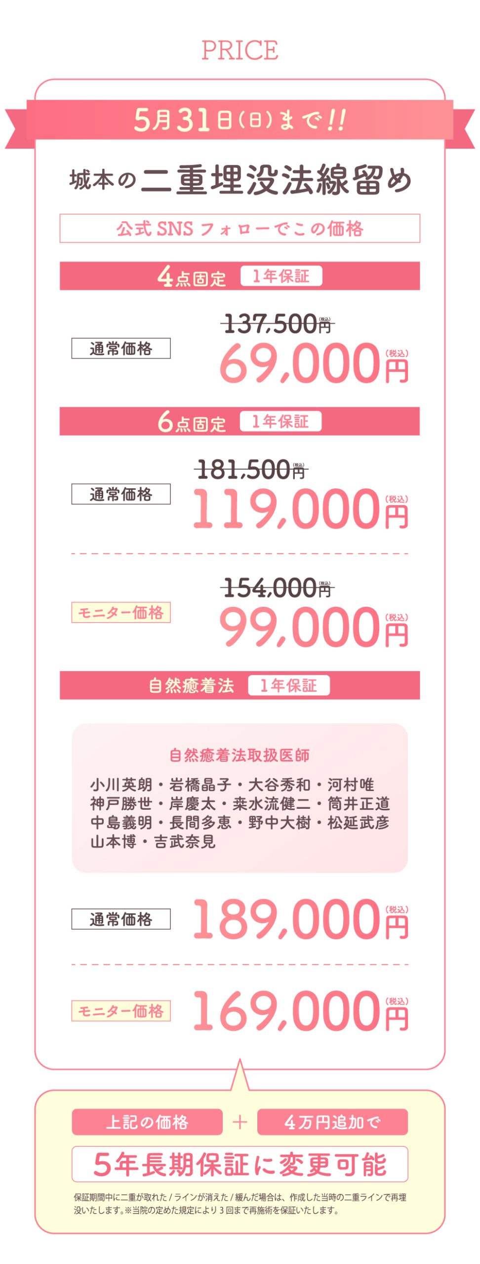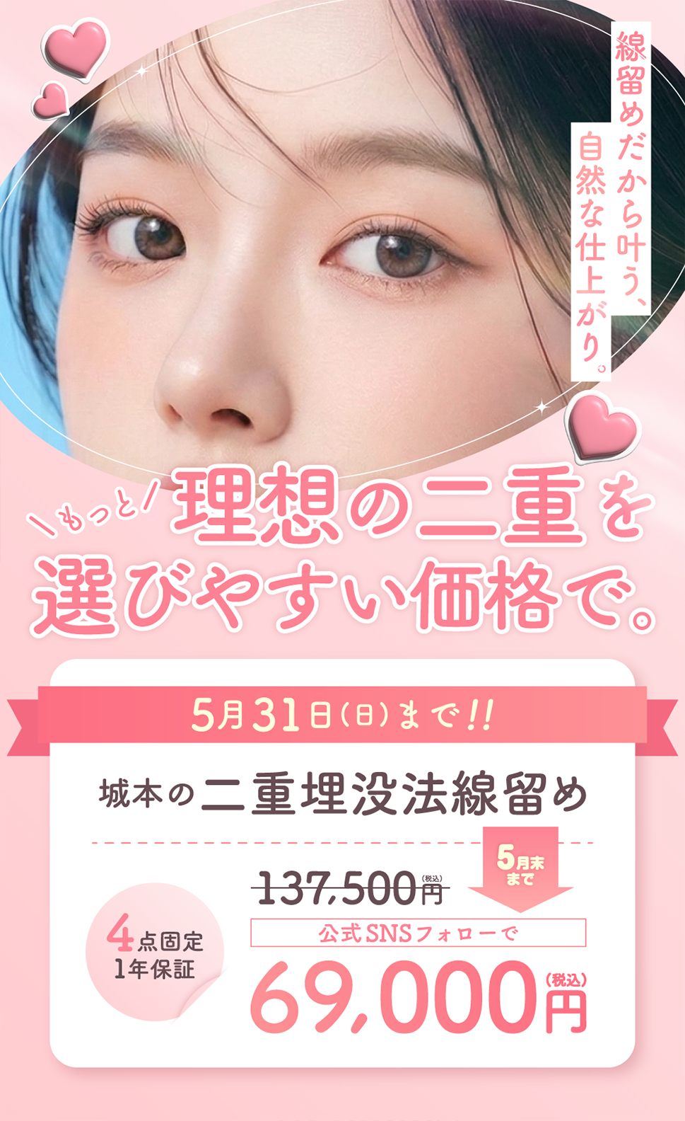 | 費用 | 二重埋没法線留め 98,000円(税込)~203,500円(税込) |